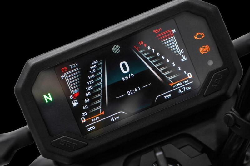 L'equipaggiamento comprende luci full Led (il faro ha doppio proiettore sovrapposto e luce DRL) e strumentazione TFT a colori da 4,2 pollici con sensore di luminosità.
