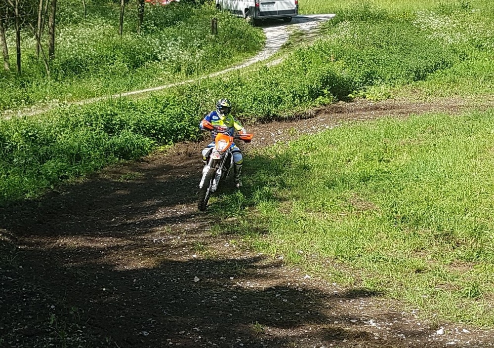 Il non più giovane Marco Feltracco, che vedete testare il piccolo bolide, è in testa al campionato italiano major di enduro, avendo vinto tutte le prove finora disputate.