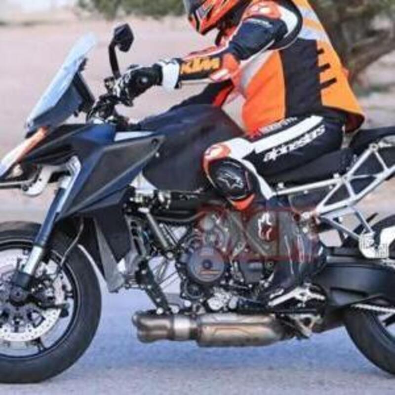 Dicevamo del frontale che appare più protettivo e appunto con l'alloggiamento per il radar; è noto come KTM stia adottando il sistema Bosch (in sviluppo anche in casa Ducati) che gestisce il cruise control adattativo e soprattutto l'allarme anti collisione e la frenata d'emergenza. Sono presenti anche i cablaggi delle sospensioni semi attive di WP.