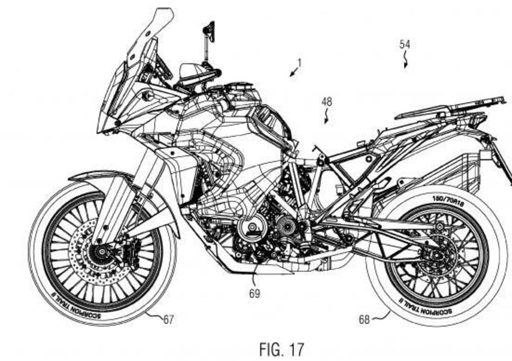 Agli avvistamenti dei modelli sorpresi nei test su strada, nei dintorni di Mattighofen, si aggiunge ora la pubblicazione dei disegni allegati alla domanda di brevetto depositata da KTM nel maggio scorso. Non solo, ma una pagina web finita online per errore (e tolta immediatamente, ma non prima che l'americana Motorcycle.com ne ricavasse qualche dato) aggiunge alcuni dettagli in più relativamente alla nuova 1290 Super Adventure, come vi descriviamo più avanti.