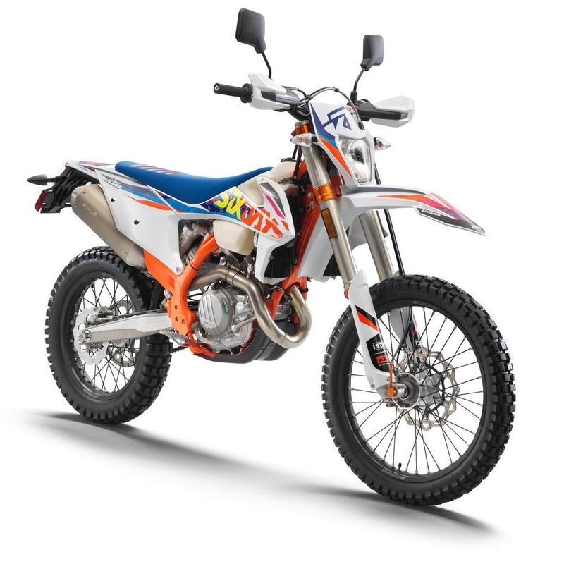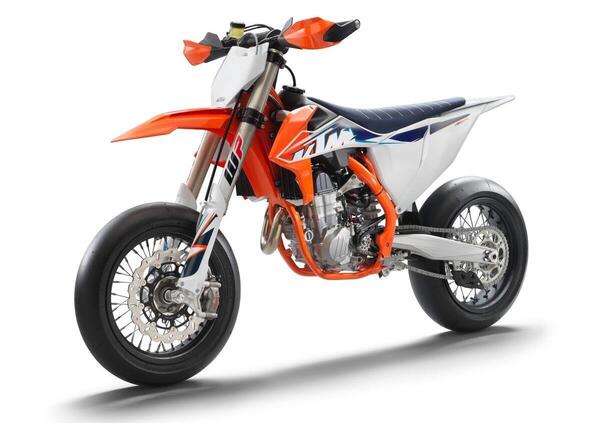 Le novità estetiche riguardano colori e grafiche per le plastiche, con il telaio arancione e la sella blu che ricordano le KTM Factory Racing.