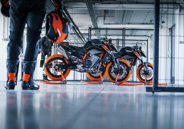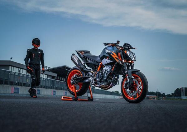A livello tecnico, la 890 R Duke mantiene il pacchetto che l'ha portata al vertice della categoria. Propulsore bicilindrico parallelo LC8c in configurazione da 121 cavalli di potenza massima e 99 Nm, telaio in tubi d'acciaio e sospensioni WP APEX completamente regolabili. L'impianto frenante continua ad affidarsi alle pinze Brembo Stylema che lavorano dischi da 320 mm, comandate da una pompa Brembo MCS.