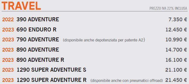 Dicevamo delle novità, per quanto riguarda i modelli Travel le ultime sono state le rinnovate 890 Adventure e Adventure R, la 690 Enduro R, la 790 Adventure, le 1290 Super Adventure S e Super Adventure R.