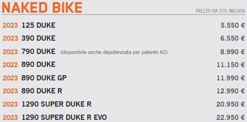 Per quanto riguarda quella che la marca austriaca indica gamma Street (per differenziarla da quella puramente fuoristradistica composta dai modelli enduro e cross), sono stati comunicati i prezzi di listino dei model year 2023.