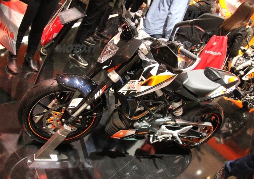 sulla base del monocilindrico della 125 Duke. Le modifiche apportate al motore di cilindrata maggiore hanno permesso di ottenere il