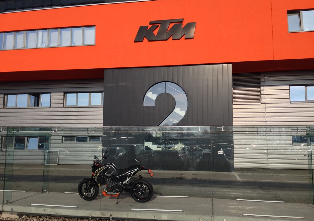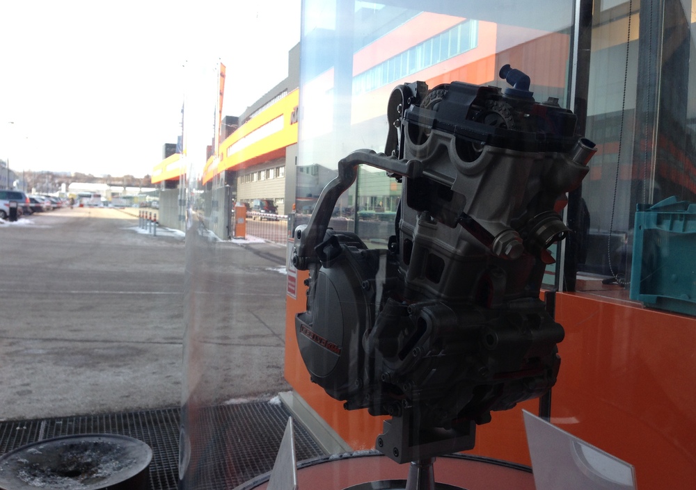 Abbiamo visitato la R&D, senza poter fotografare nulla, naturalmente, ma in ogni caso era stato tutto abilmente celato ad occhi indiscreti, e le cose visibili riguardavano unicamente moto e motori non inediti. Non c'è da stupirsi perché non si passino informazioni che riguardano piani futuri e risorse economiche consistenti. Per cui siamo usciti dalla sede KTM soddisfatti a metà, ma con l'impressione di aver visto un'azienda viva e vitale. Che gioca con gli slogan e i messaggi cari al marketing, ma che si regge su una base solida, con tanta gente preparata, entusiasta e con a disposizione tutti gli strumenti per fare bene.