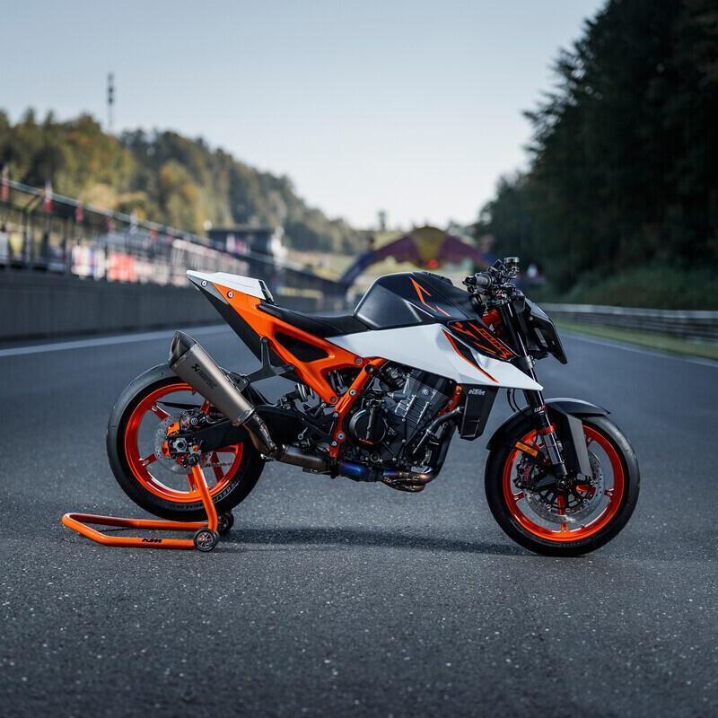 Punta di diamante del segmento medio, la 990 Duke (prezzo 12.990 euro) sfodera 123 CV da 947 cc in una livrea bianco-nero-arancione aggressiva, mentre la 990 Duke R (14.990 euro) eleva il tutto a 130 CV con sospensioni WP Apex regolabili, leveraggio posteriore innovativo e display TFT touchscreen da 8,8".
