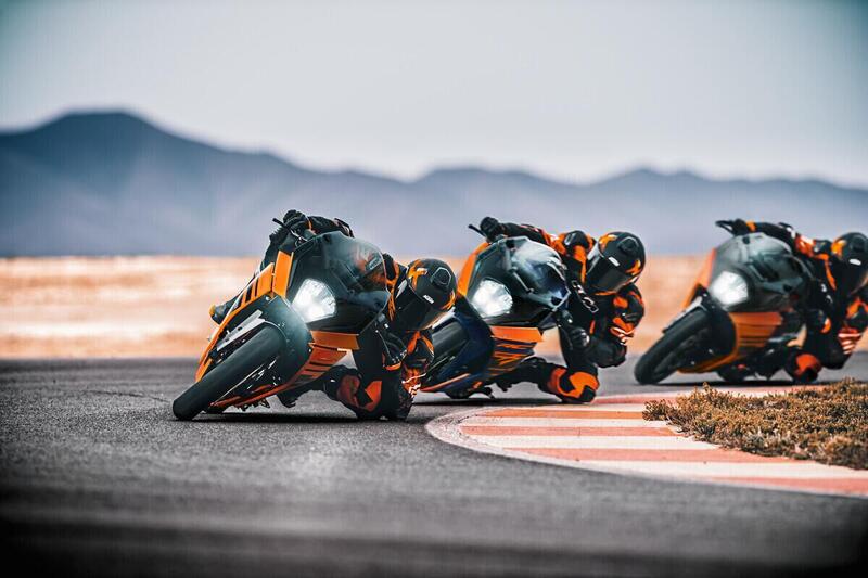 Il top di gamma, la KTM RC 390 2024, avrà due nuove colorazioni: una arancio/blu e l’altra arancio/nero, entrambe con telaio orange, mentre il modello arancio su nero verrà dotato di cerchi arancio.