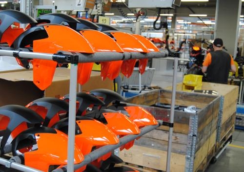 Il resto della produzione (gamma cross/enduro, adventure, naked e sportive) resta a Mattighofen, dove anzi KTM sta procedendo a un significativo ampliamento dei fabbricati. Ha alzato di un piano tutta la sede destinata a ospitare gli uffici direzionali (presto qui arriverà anche Husqvarna); ha ampliato lo stabilimento e ora sta ultimando il nuovissimo centro di ricerca e di sviluppo.
