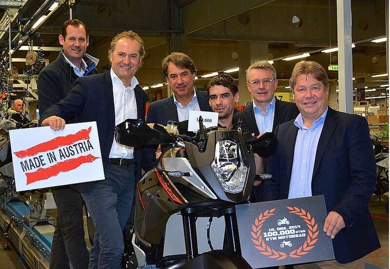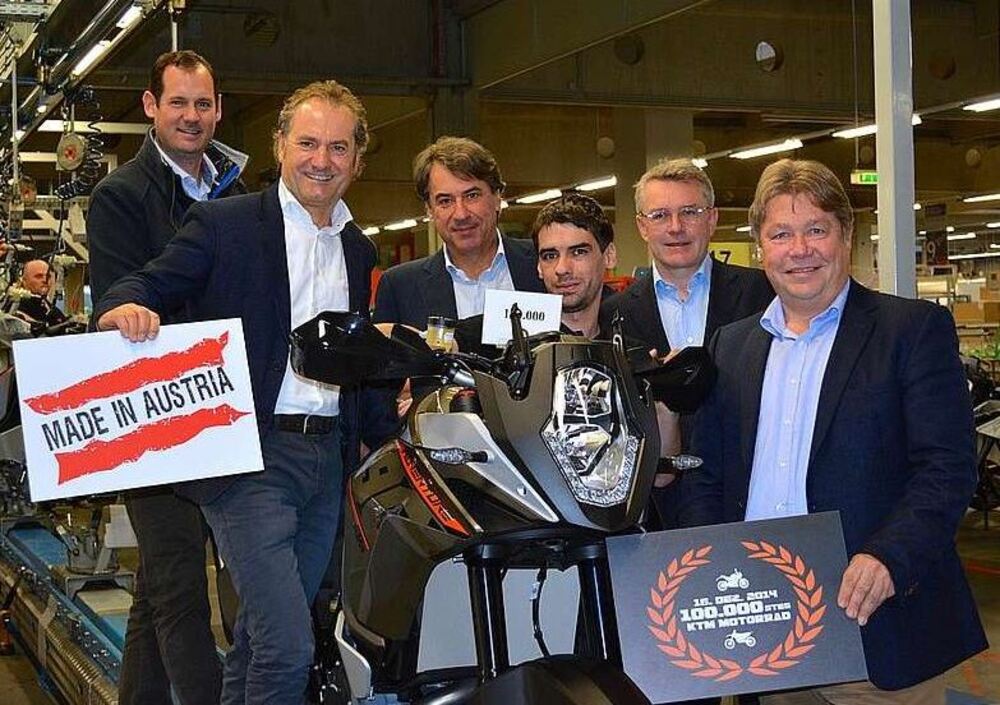 KTM produce attualmente in Austria e India. Per la prima volta nello stabilimento principale di Mattighofen è stato superato un importante traguardo, non soltanto simbolico, il record delle centomila moto costruite in un anno. Martedì 16 dicembre, alle ore 9, dalla catena di montaggio è scesa infatti la moto numero 100.000. Per l'occasione è stata scelta una Adventure 1190 versione 2015.