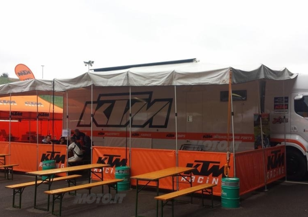 I principianti hanno potuto approfittare dell'assistenza offerta dagli istruttori KTM, e tutti hanno potuto provare le RC8, Duke 690 e Super Duke 1290 che facevano bella mostra di sé nel paddock. Per chi preferiva c'era la possibilità di godersi le proposte più stradali della Casa austriaca (le naked e la nuovissima Adventure 1190 con sistema MSC) sulle spettacolari strade circostanti il tracciato: dopo un rapido briefing per capire al meglio la sofisticata gestione elettronica della moto gli istruttori KTM hanno portato "a spasso" diversi gruppi, tutti rientrati (come prevedibile) entusiasti di moto e giro.