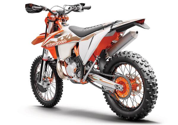 Quando KTM dice "ready to race" lo fa senza mezzi termini. Questa versione Erzbergrodeo della 300 da enduro ne è inequivocabile dimostrazione. Una moto pensata per quelli che amano confrontarsi con tutte le situazioni più estreme. Guadagna di serie una lunga lista di chicche prontogara: cerchi DID DirtStar e mozzi anodizzati lavorati a CNC, oltre a tripli morsetti anodizzati arancioni fresati a CNC, sella Dalla Valle Factory, una corona posteriore Supersprox stealth, paramani chiusi, ventola del radiatore, piastra paramotore, protezioni disco anteriore e posteriore e tanto altro. Ovviamente anche la grafica è originale e ben riconoscible grazie alla livrea Erzbergrodeo e gli adesivi che ripropongono le venature del legno.
