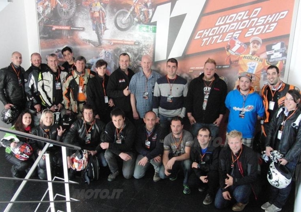KTMRiders, attivo forum italiano che raccoglie i possessori delle moto di Mattighofen, vanta da diverso tempo un ottimo rapporto con la filiale italiana di KTM. Grazie alla loro intraprendenza, i ragazzi del forum hanno organizzato un vero e proprio pellegrinaggio che ha portato i determinati KTMisti fino alla sede austriaca; il viaggio, come sempre accade, è stato bello quanto la destinazione, ma veder nascere le moto oggetto della propria passione non ha prezzo. Lasciamo a Davide Pizzighello, il "patron" di KTMRiders.it, la parola per un brevissimo racconto di come hanno vissuto questa esperienza.