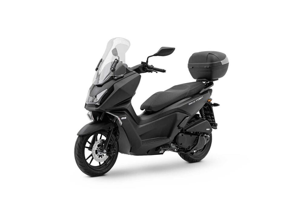 Il cuore pulsante è un nuovo motore 125cc Euro 5+ che garantisce prestazioni brillanti e bassi consumi. Le linee moderne e dinamiche dello Skytown, caratterizzate da un'illuminazione a LED e un ampio parabrezza, ne sottolineano il carattere dinamico. La sella ben imbottita e il vano sottosella capiente lo rendono perfetto per gli spostamenti quotidiani, mentre il cavalletto centrale assicura stabilità in ogni situazione. La strumentazione digitale completa e intuitiva offre al pilota tutte le informazioni necessarie, mentre i numerosi vani portaoggetti, tra cui un ampio scomparto sottosella e un doppio vano anteriore con presa USB, permettono di organizzare al meglio gli oggetti personali. Il telaio leggero e rigido, abbinato a sospensioni confortevoli e a un sistema frenante con CBS, mirano a garantire un'ottima maneggevolezza e sicurezza in ogni condizione di utilizzo. Il motore Euro 5+, da 11cv a 8.500 giri e una coppia di 10,6 Nm a 6.500giri potranno garantire un'accelerazione pronta e una velocità di punta adeguata anche ad un utilizzo extraurbano. Ruota anteriore da 14", posteriore da 13" telaio leggero ma robusto e sospensioni adeguate al terreno urbano completano il quadro ciclistico di uno scooter che potrà accontentare un vasto pubblico di utenti.