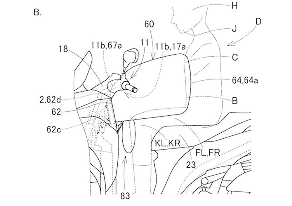 Sebbene Honda sia attualmente la sola a produrre un veicolo a due ruote dotato di airbag, la Gold Wing presentata nel 2009, in precedenza c’era già stato un articolato brevetto depositato da Takata, il leader nipponico nella produzione di airbag automobilistici, e risale all’anno 2000 uno dei primi brevetti Yamaha in quest’ambito.