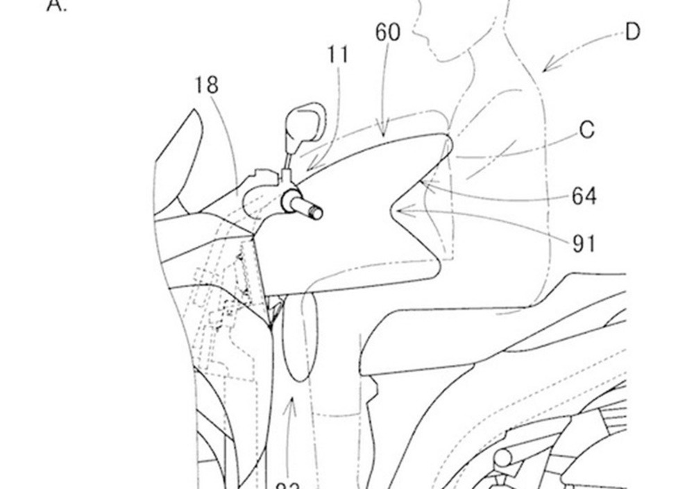 I nuovi disegni depositati da Yamaha per la richiesta di brevetto per un dispositivo airbag dedicato agli scooter prendono come veicolo esemplificativo un modello del tutto simile al Tricity.