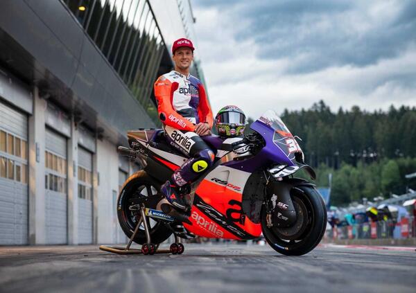 Ma la notizia probabilmente più interessante è che durante il prossimo GP di Misano, dal 2 al 4 settembre, Aprilia svelerà una sorpresa: forse un nuovo modello in vendita con questa livrea. Una serie speciale o cosa?