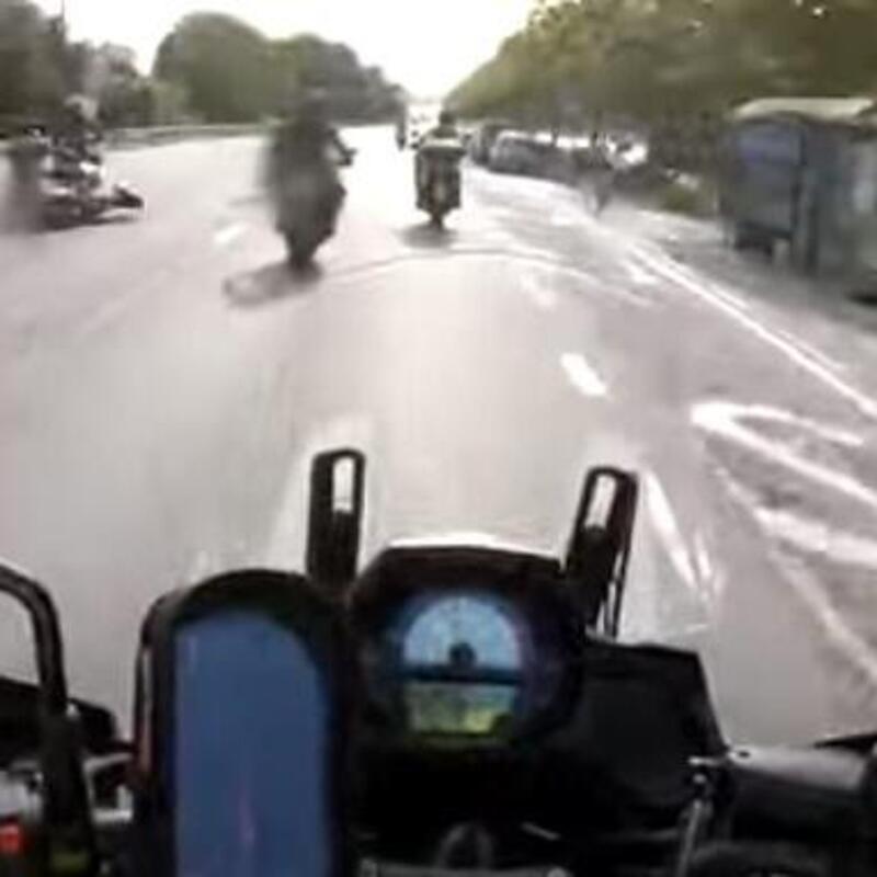 Ha rischiato di trasformarsi in tragedia la passeggiata tranquilla in moto di un harleysta e di un suo amico. L'uomo in sella alla iconica moto americana, infatti, aveva da poco svoltato a sinistra e stava percorrendo una strada secondaria, seguito dal compagno che con la action cam installata sul caso riprendeva giro e paesaggio. Non pensava certo che di lì a poco avrebbe filmato una scena agghiacciante. A folle velocità, infatti, irrompe sulla scena un'auto completamente nel senso opposto di marcia.