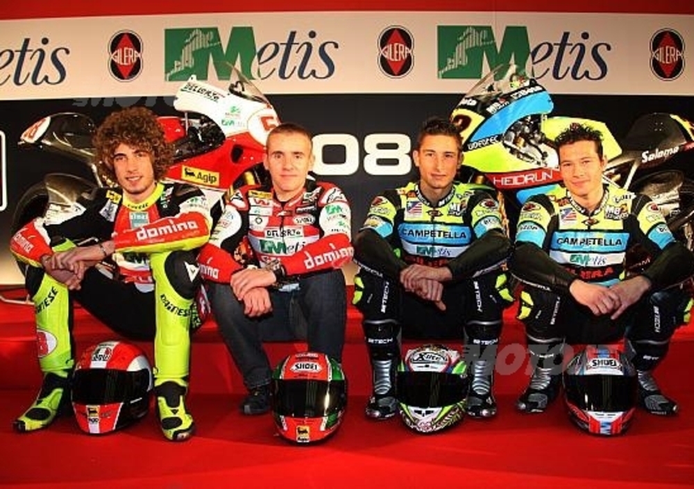Roberto Locatelli - Pilota Team Metis Gilera # 15: "La stagione 2007 è stata difficile e complicata. Credo che per un pilota, fare parte di una squadra ufficiale sia l'avverarsi di un sogno, ti senti parte di un progetto e avverti la responsabilità che ne deriva. Purtroppo il mio lavoro è stato condizionato dall'infortunio di Jerez e, nonostante la mia grandissima forza di volontà che mi ha permesso di tornare in moto dopo soltanto 55 giorni, la stagione era sotto certi aspetti compromessa. Adesso mi sento bene e sento di essere tornato il Roberto che tutti conoscete, pronto a contribuire con la mia esperienza, al raggiungimento di quei traguardi che meritano le aziende che noi tutti rappresentiamo in questa nuova avventura".