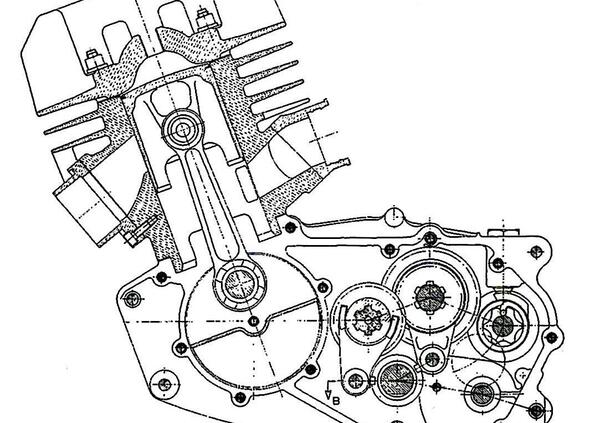 Si trattava di una moto raffreddata ad aria di semplice disegno ma al tempo stesso di notevole interesse tecnico. Aveva infatti l’ammissione controllata da lamelle e disponeva di cinque condotti di travaso (uno dei quali direttamente collegato con il vano a valle del pacco lamellare).