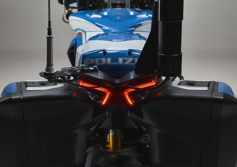 Le Turismo Veloce in forza al reparto sono ricche di soluzioni tecniche e funzionali per adattarle al nuovo impiego. Spinta dal tre cilindri MV Agusta con albero motore controrotante che eroga una potenza di 110 CV a 10.150 giri/min, grazie alle borse laterali offre una capacità di carico di oltre 60 litri, questo ha permesso di stivare il kit di pronto intervento e la mitraglietta d’ordinanza. Grande l’autonomia garantita dal serbatoio da 22 litri, il più capace della categoria, che consente di percorrere più di 300 km con un pieno.