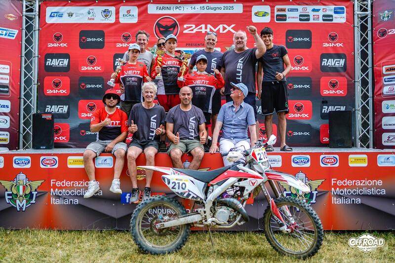 Introbio, LC, 11 Settembre. Abbiamo incrociato Vent alla 6 Giorni. Team Delta, Matteo Cagnoni, Fabio Fasola, Andrea Ragni. Lasciando da parte Fasola e Ragni, ci ha colpito… tre volte Mattia Cagnoni. La prima, quando scopriamo che intende correre la 6 Giorni con un cinquantino (del resto ha 15 anni). La seconda quando, giorno dopo giorno, il ragazzino (che peraltro è già Campione Italiano Minicross) mette in fila gli “anziani” (nel senso di esperti, eh). La terza quando si presenta effettivamente al traguardo, un piazzamento che solo qualche anno fa poteva essere clamoroso e oggi inorgoglisce tutta la categoria. Quella dei ragazzini che si cimentano, dei cinquantini che non si rompono e diventano piccole armi di grande efficacia. Ecco, l’”arma” in questione è una Vent RR 50 2T, il “cinquantino” terribile.