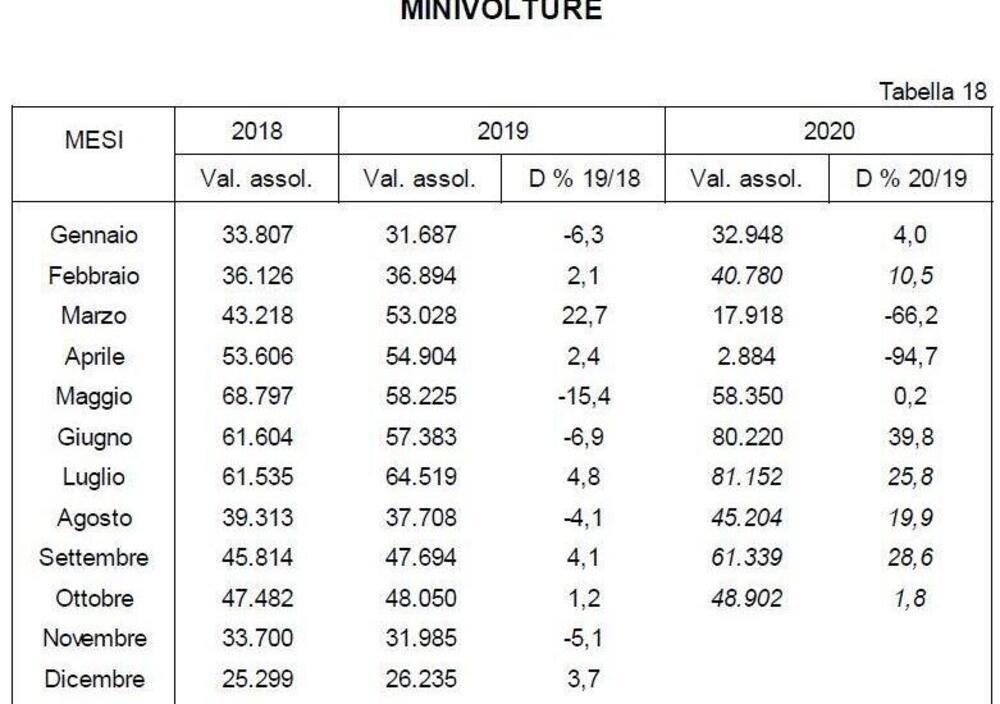 Tornando alle moto, le radiazioni a ottobre sono state 10.334: in calo del 5,2% sullo stesso mese del 2019 quando la diminuzione fu del 4,3%.