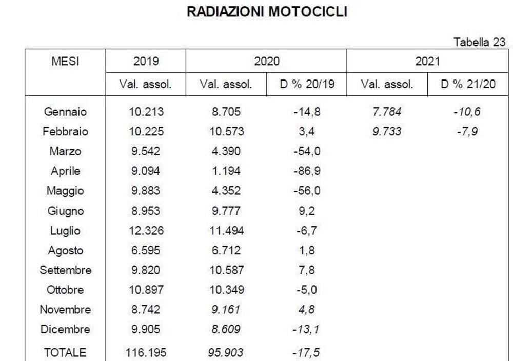 Il mercato del nuovo ha visto le immatricolazioni di febbraio aumentare del 3,4% (19.263 i veicoli venduti) grazie alla ripresa degli scooter che sono cresciuti di un +18,9%, mentre le moto si sono fermate a 8.226 immatricolazioni accusando un -7,4%. Il confronto è naturalmente con un febbraio 2020 non ancora influenzato dalla crisi pandemica.