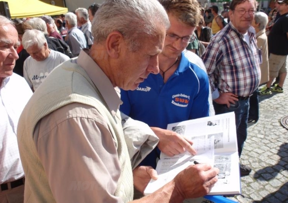 Nel 2001 avevano iniziato con un’esposizione statica. Solo per i due marchi di casa. Poi, nel 2002 la prima gara, con una classe dedicata alle moto straniere. Domenica scorsa, in occasione dell’edizione 2012, erano oltre 280 gli iscritti alla 12°Adac Classic Gelandefahrt “Rundum die MzStadtZschopau”. Per il “giro attorno alla città di Zschopau” – questa la traduzione - , luogo dove le efficacissime MZ prendevano forma, sono arrivati persino dalla Norvegia. Quattordici ore di viaggio, più 6 di traghetto. Gli iscritti sono perlopiù i tedeschi, poi ci sono Belgi e Olandesi, insieme a qualche presenza dalla vicina repubblica Ceca. Italiani ridotti a poche decine, ma va bene uguale. Anzi non guasta. Meno gente ansiosa solo di fare bella figura in classifica, dopo aver passato tutto il giorno, giro dopo giro, col coltello tra i denti.