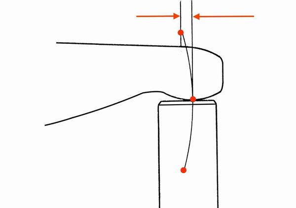 In quest’ottica appaiono vantaggiosi bilancieri con i bracci corti (minore massa in movimento e a una inferiore distanza dall’asse di oscillazione). In questa direzione però non ci si può spingere più di tanto. L’estremità del bilanciere che contatta la valvola si muove secondo un arco di cerchio il cui raggio corrisponde alla distanza dal fulcro.