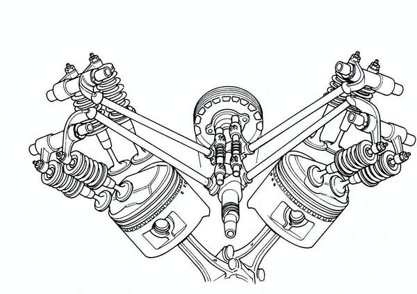 Da tempo i motori di altissime prestazioni hanno una distribuzione bialbero. Ormai si tratta di uno schema standardizzato, unitamente alle quattro valvole per cilindro, poste su due piani poco inclinati tra loro.
