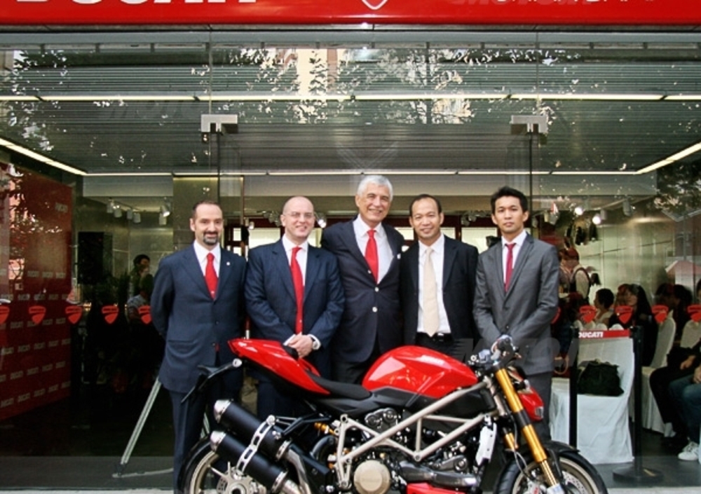 Lo scorso anno abbiamo costituito gli uffici di coordinamento a Shanghai e oggi siamo molto felici ed orgogliosi di annunciare il nostro ingresso ufficiale nel mercato cinese. Direttamente, attraverso una rete di distribuzione, vogliamo confermare il prestigioso ruolo di ambasciatori del "made in Italy" che le nostre moto, conosciute in tutto il mondo per la loro coolness, le prestazioni, l'innovazione tecnologica e la fantastica storia di tradizioni sportive, rivestono. Con l'apertura in Cina, Ducati è presente in tutto il mondo. Sono ben 80 i paesi dove le nostre moto sono vendute, non si tratta solamente di un importante e significativo traguardo numerico, quanto la conferma del nostro impegno per la sfida che abbiamo lanciato al mercato per gli anni a venire.