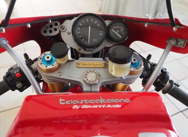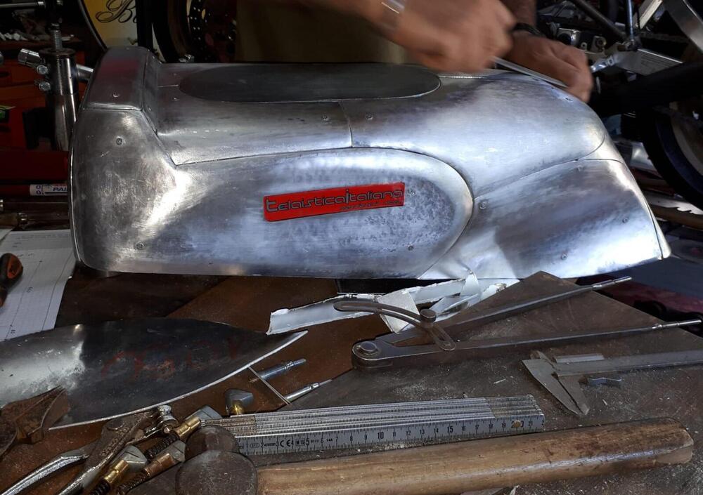 Sostenuti da questa ispirazione, Giovanni e Rosario si sono dedicati per due anni alla realizzazione della special: non una show bike ma un esemplare marciante al 100% grazie anche alle cure del tecnico Giuseppe Cavallo che si è occupato della messa a punto del motore. Grandissimo l'impegno artigianale alle spalle della special; il telaio (escluso il forcellone) è stato realizzato in proprio alla ricerca della massima compattezza e leggerezza ma una delle parti più impegnative è stata l'ideazione e la costruzione dell'airbox: un elemento scomponibile in sette pezzi per poter essere inserito adeguatamente all'interno della V dei due cilindri. Totalmente made in TelaisticaItaliana anche il serbatoio, un pezzo unico in alluminio della capienza di 18 litri e dotato di doppio tappo in pieno stile Endurance, specialità citata anche dal doppio gruppo ottico anteriore.