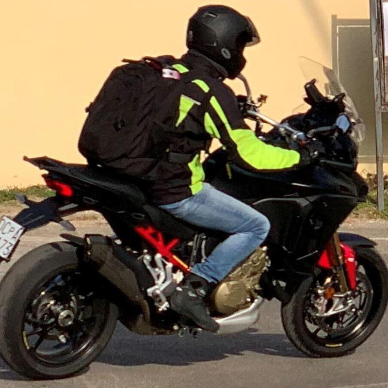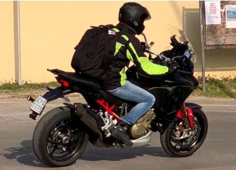 La conferma che Ducati stesse sviluppando una nuova versione della Multistrada V4 l'abbiamo avuta lo scorso mese di marzo quando un nostro lettore ci ha mandato un paio di immagini della moto beccata in collaudo sulle strade dell'Appennino bolognese (foto qui sotto).