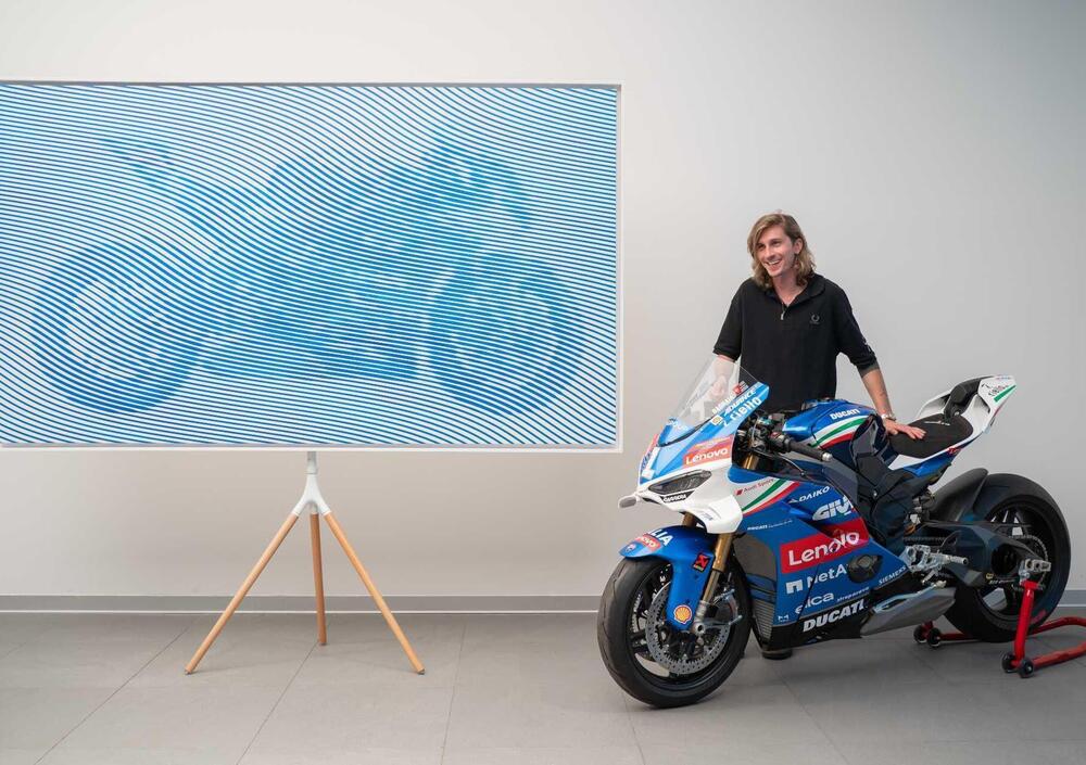 Protagonista di un momento speciale che si è tenuto venerdì 13 giugno nella sede Ducati di Borgo Panigale, Andrea Crespi è una delle voci artistiche italiane emergenti della nuova generazione, noto per la sua capacità di fondere dimensione fisica e digitale. Le sue opere, esposte in sedi prestigiose come la Triennale di Milano, il CAFA Art Museum di Pechino, Times Square a New York e Art Dubai, creano illusioni ottiche dove linee e forme si fondono e mutano, rivelando il soggetto in modo sempre nuovo, a seconda del punto di vista e dello strumento d'osservazione, che si tratti dell’occhio nudo o della lente di una camera. Un approccio che, in dialogo con Ducati, mette in luce valori condivisi: l’attenzione al dettaglio, la ricerca estetica, l’equilibrio tra tradizione e innovazione, e una visione del movimento come esperienza autentica ed emozionale, in cui la tecnologia ne amplifica la percezione.