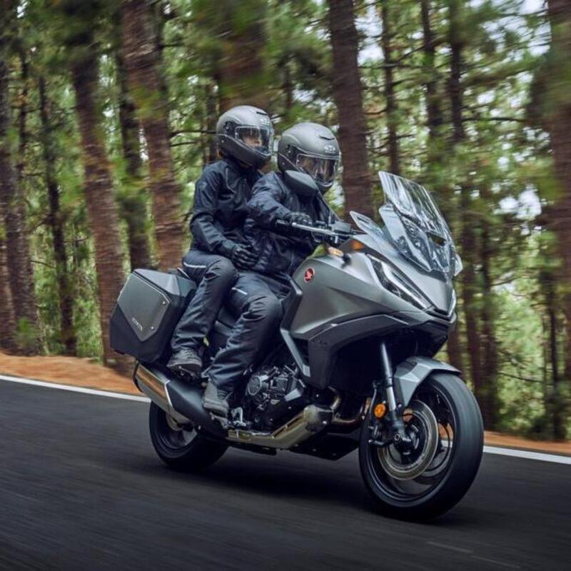La NT1100 sarà disponibile anche con la trasmissione DCT, eroga 102 cavalli a 7.500 giri, ha serbatoio da 20 litri, protezione aerodinamica assicurata da una mezza carenatura con cupolino alto e deflettori paramani, sella ospitale anche per il passeggero, dimensioni generose ma non abbondanti, sella a 820 mm dal suolo, borse laterali di serie e peso in ordine di marcia , con il pieno, dichiarato in 238 kg, dieci in più se c'è il sistema DCT.