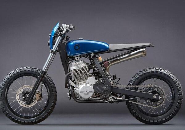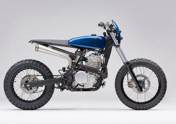 Passando all'estetica, il serbatoio è stato prelevato da una vecchia moto da fuoristrada - non specificata - mentre il cupolino che ospita i due mini faretti omologati e sovrapposti è stato ricavato da un parafango.