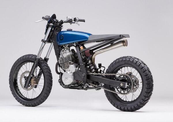 L'aspetto minimale, che contrasta con i pneumatici tassellati, si deve all'eliminazione di sovrastrutture, parafanghi e staffe varie, e alla “riduzione” del telaio posteriore che ora è costituito da una esile struttura triangolare che sostiene la sella monoposto e racchiude alla fine dei tubi tondi le luci posteriori e sostiene la targa.