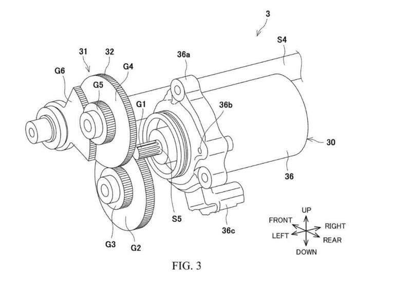 Altri disegni mostrano il sistema elettromeccanico di comando del selettore delle marce. Un motore elettrico (numero 30 nel disegno) è accoppiato a una serie di ingranaggi riduttori che ne incrementano la coppia trasmessa fino ad arrivare all'ultimo ingranaggi a settore. Quest'ultimo si muove in una direzione e in quella contraria inserendo e scalando i rapporti come si fa solitamente con il classico pedale.