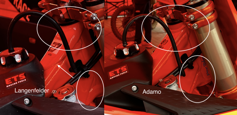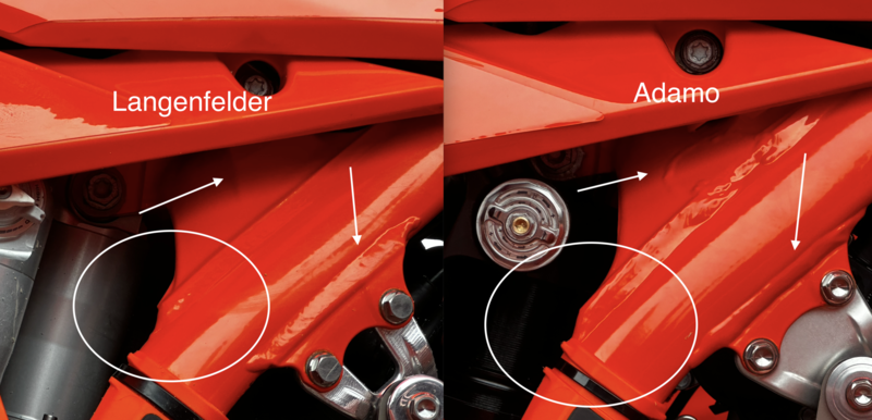 Ed ecco, però, dopo aver passato qualche minuto, a casa, ad analizzare le foto che abbiamo scattato che iniziano ad emergere le differenze. Un cannotto di sterzo completamente differente, forma, dimensione, altezza e saldature. Così come alcune differenze sono presenti nella zona dell'attacco del mono anche se le differenze sono minori.