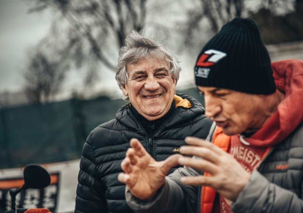 Giovanni è uno dei Piloti, uno di quei pochissimi di cui si diceva sopra, capaci di guidare davvero quella Moto, Ferro è il Genio che ha scritto con le sue mani quella Storia di acciaio vivo. Ma bisogna ricordarsi di Wolfgang Felbar, l’ingegnere di KTM che aveva definito i parametri del progetto e dato il via alla costruzione del telaio, e interpellare la “mente” centrale, il progettista del Motore, Claus Holweg, che aveva avuto l’incarico di creare la gemma da incastonare nell’idea di Stefan Pierer: una nuova Moto anche per KTM, per il futuro di KTM!