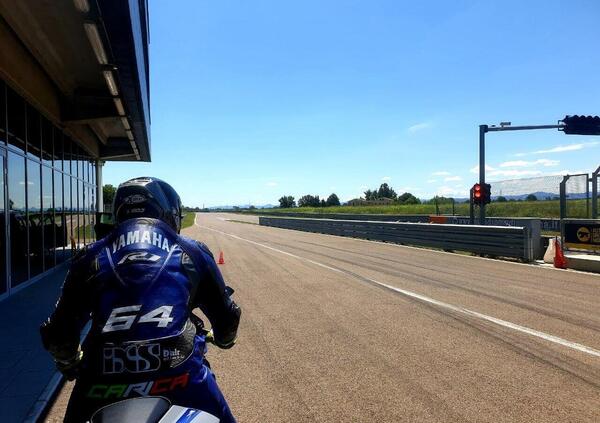 Dal mio punto di vista la situazione già rasenta il paradisiaco, per poi scoprire che IL Luca, avendo finito le moto dei corsi (fully booked) ha chiesto una moto in più direttamente a Yamaha Italia. "Il corso lo fai con questa". I miei occhi si posano su una R6 coccolata da termocoperte (IL Luca santo subito). Altro svenimento. Altri sali.