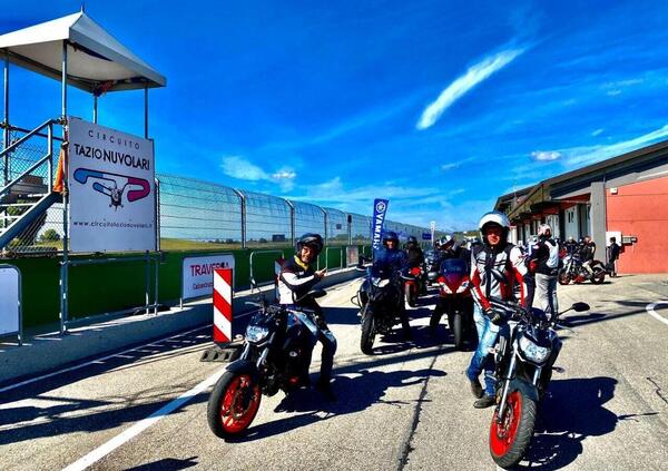 Prima rivelazione: in pista c'è la qualunque, ovviamente organizzati in turni in base al livello, vai dal neofita che si presenta con lo zainetto, già in sella alla moto che userà per girare con le gomme da strada, fino al (presunto) fenomeno che dal furgone scarica una Panigale V4 così elaborata che vale più di un bilocale all'Arco della Pace.