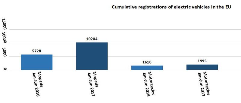 Esistono differenze fra una nazione e l'altra. Per esempio in Italia i motocicli elettrici sono lo 0,1%, ovvero uno su mille, del totale. L'Olanda ha la quota maggiore (1,3%), l'Austria arriva allo 0,9%, Francia e Spagna si equivalgono con una quota dello 0,67%, in Germania si scende allo 0,36% e in Gran Bretagna ad appena 0,01% (ovvero 36 registrazioni in totale).