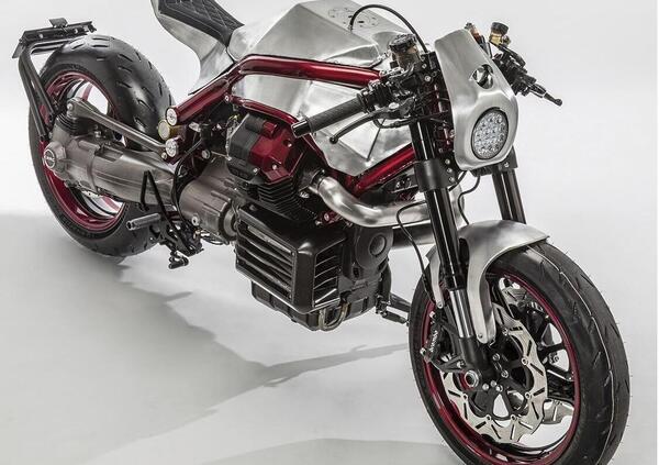 L'obiettivo era ottenere un connubio tra café racer e streetfighter, partendo da un foglio bianco con soltanto qualche paletto: il cliente chiedeva sportività, uno stile senza linee morbide e l'alluminio impiegato per le sovrastrutture lasciato a vista.