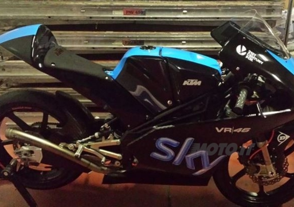 Il team più atteso del prossimo anno in Moto3 è certamente quello Sky VR46. E quale miglior occasione se non la finale di un programma seguitissimo come X-Factor, per pubblicizzare la squadra? Ieri sera durante il talent show è stata mostrata la KTM che correrà il prossimo anno il Motomondiale. Sulle carene in bella mostra c'era il logo dell'emittente televisiva. A giudicare dal tanto carbonio rimasto inutilizzato è difficile però pensare che sarà la versione definitiva e che non si aggiungeranno altri sponsor.