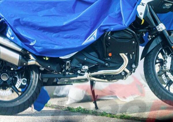 Un'ultima immagine non ufficiale mostra la nuova GS 1300 parzialmente coperta da un telo: non la si vede nella sua interezza, e quindi non nella sua estetica, ma la fotografia è sufficiente per avere un paio di conferme importanti.