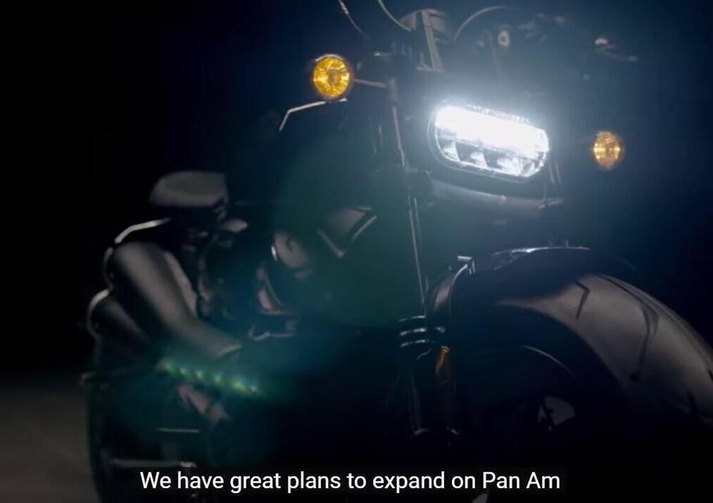 Nel video di lancio della Pan America dell'altro giorno (lo trovate qui sotto) compare brevemente anche la Custom 1250: è verso la fine, andate al minuto 24 e 25” se volte vederla. Altrimenti passate alle foto più sotto.