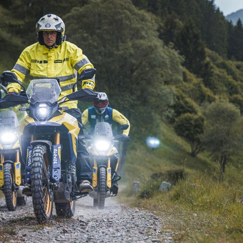 A dispetto del look da maxienduro i cerchi sono però da 17 pollici, con una gommatura 100/80 anteriore e 130/70 posteriore che però mostra pronunciati tasselli. Non manca la presa USB, mentre la sella è a 795 mm da terra e il peso di 148 kg. Notevole, per il segmento, la presenza dell'ABS a doppio canale.