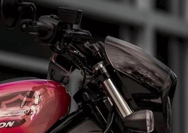 Si notano anche un piccolo cupolino attorno al faro rotondo, il manubrio moderatamente rialzato e i retrovisori bar-end.